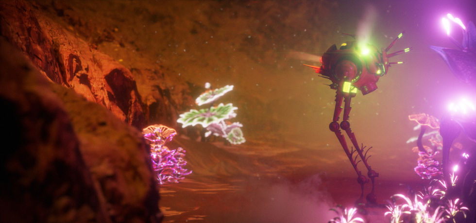 A fully original 3D-animated piece set in a desolate, resource-rich world shaped by an emergent alien intelligence.